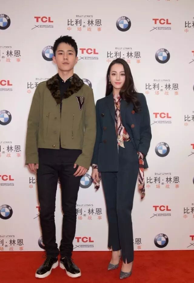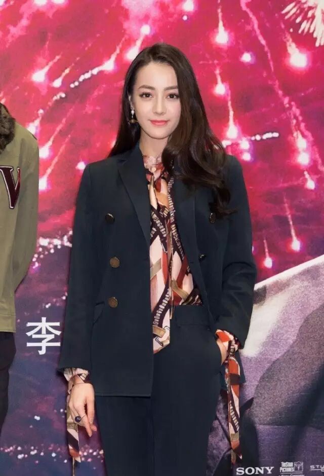 迪丽热巴身材深蓝色西服套装搭配缎面印花衬衣,也是很好的结合了柔美又硬朗的元素。▼