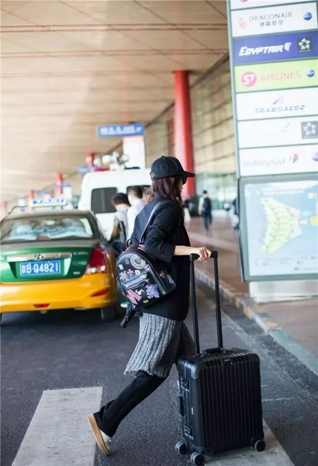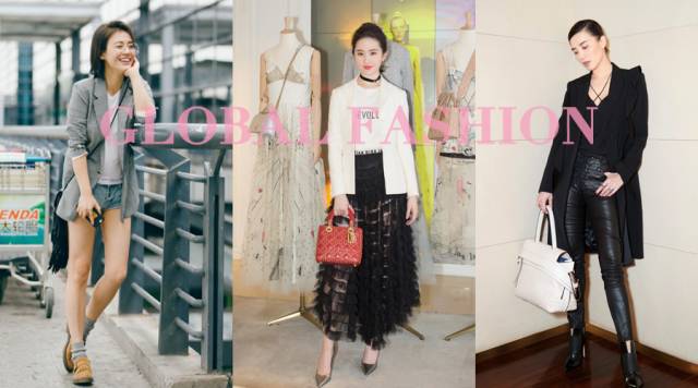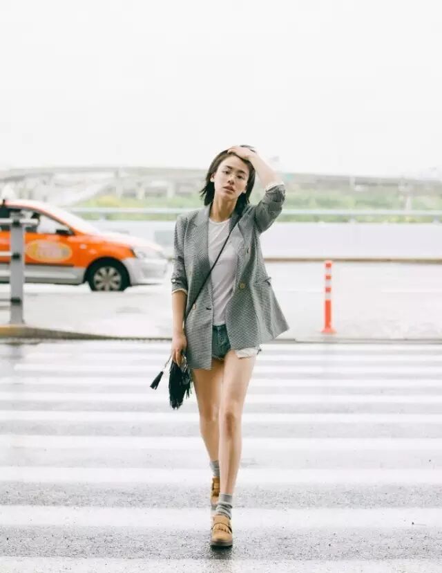 袁姗姗喜欢选择中长款的西服外套,内搭休闲的Tee和短裙or短裤。▼
