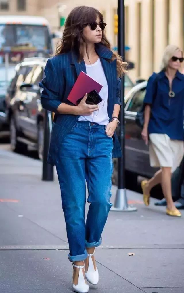 西服外套除了西装裤配套之外,搭配牛仔裤、喇叭裤、乃至阔腿裤都轻松hold住。▼