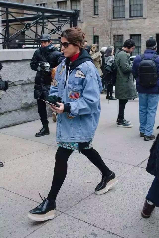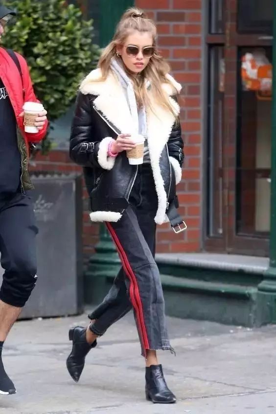 羊羔绒和卫衣搭配也很抢眼,注意卫衣的长度尽量不要超过外套,短款卫衣有利于拉长下半身比例~▼