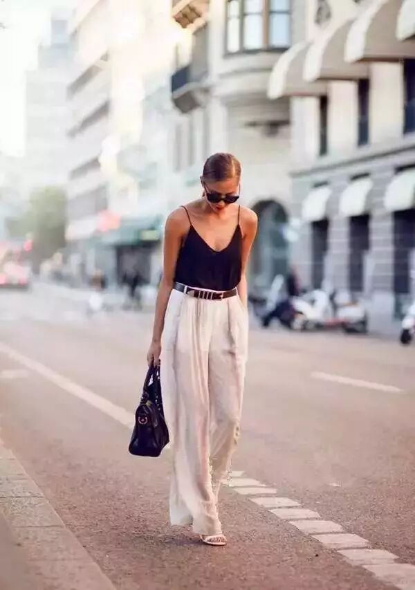 吊带和牛仔的搭配会比较休闲时髦,和阔腿裤放在一起就主打慵懒随性的优雅啦。