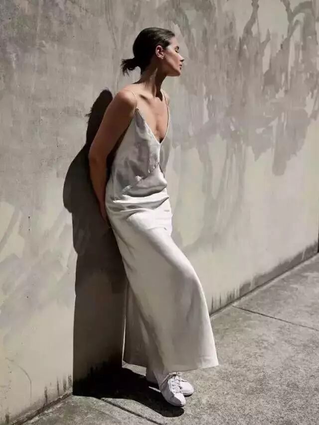 最后就是最简单直接的懒人搭配法,one piece吊带裙。近两年大热的睡衣风潮,吊带裙自然也成为必备单品。最重要的是完全不用烦心搭配,一条吊带裙就可以轻松搞定。