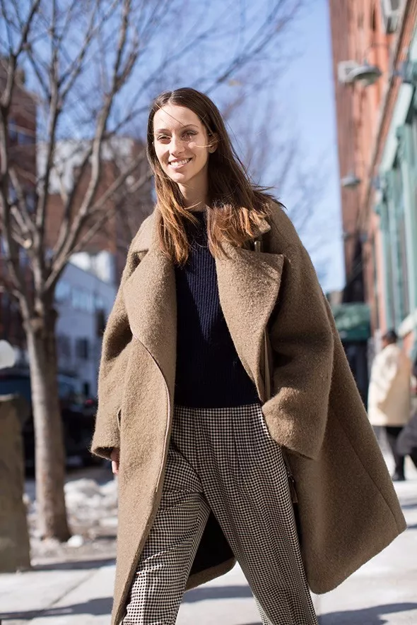 格纹作为今年大热的元素,H型大衣这种款式加格纹,非常复古。▼