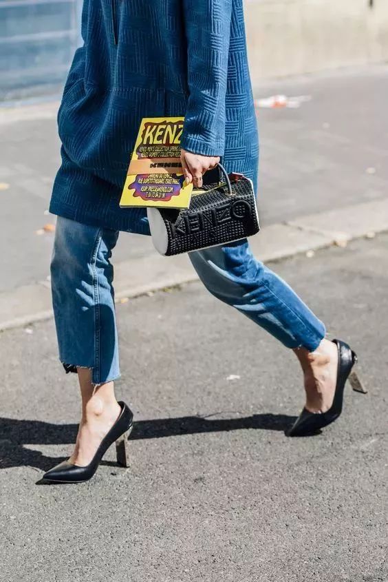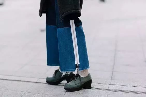 裤脚拼色款也非常好看,卷裤边已经不fashion啦,现在流行的是裤脚拼一截别的色块!