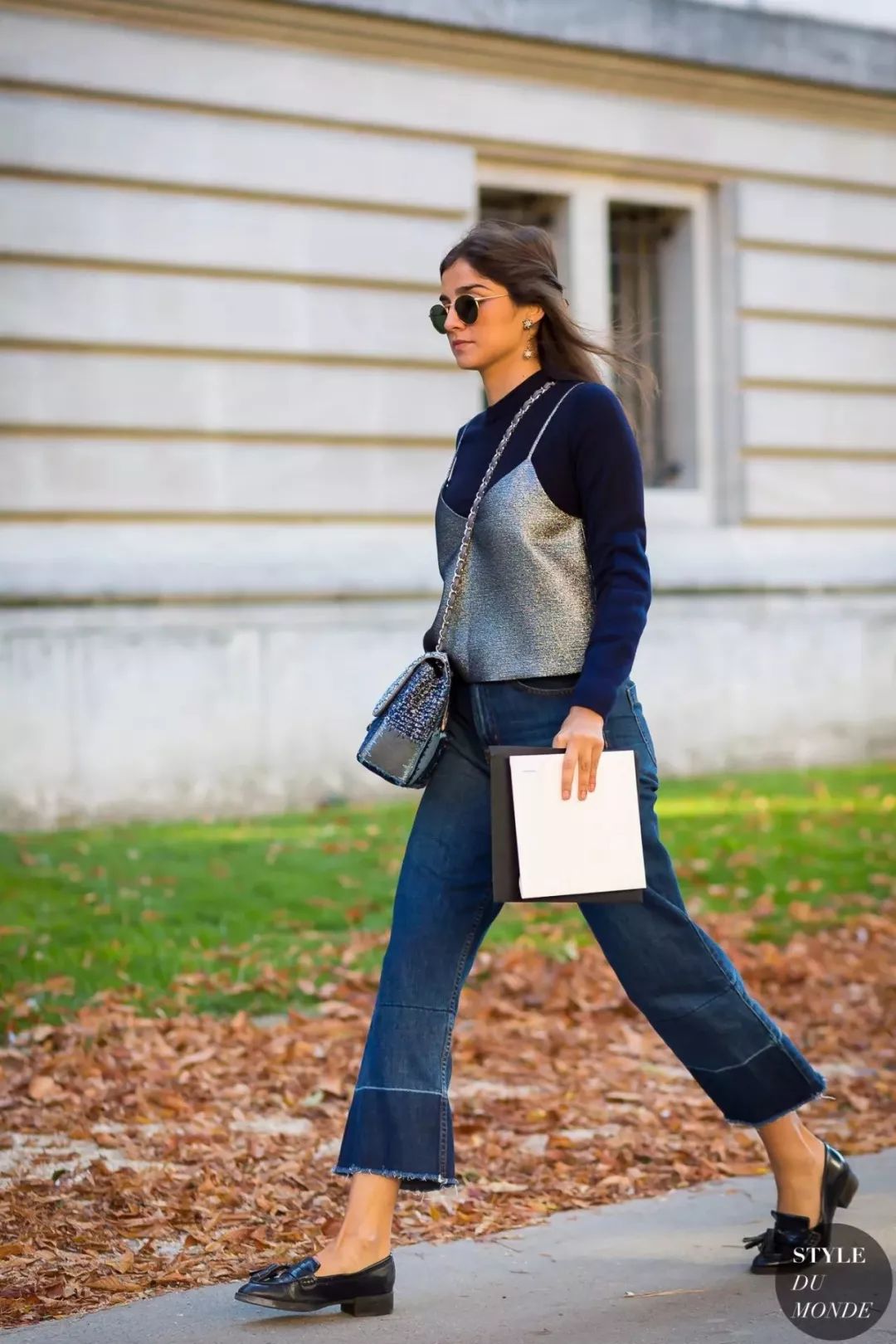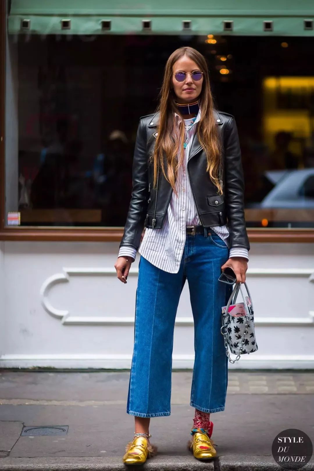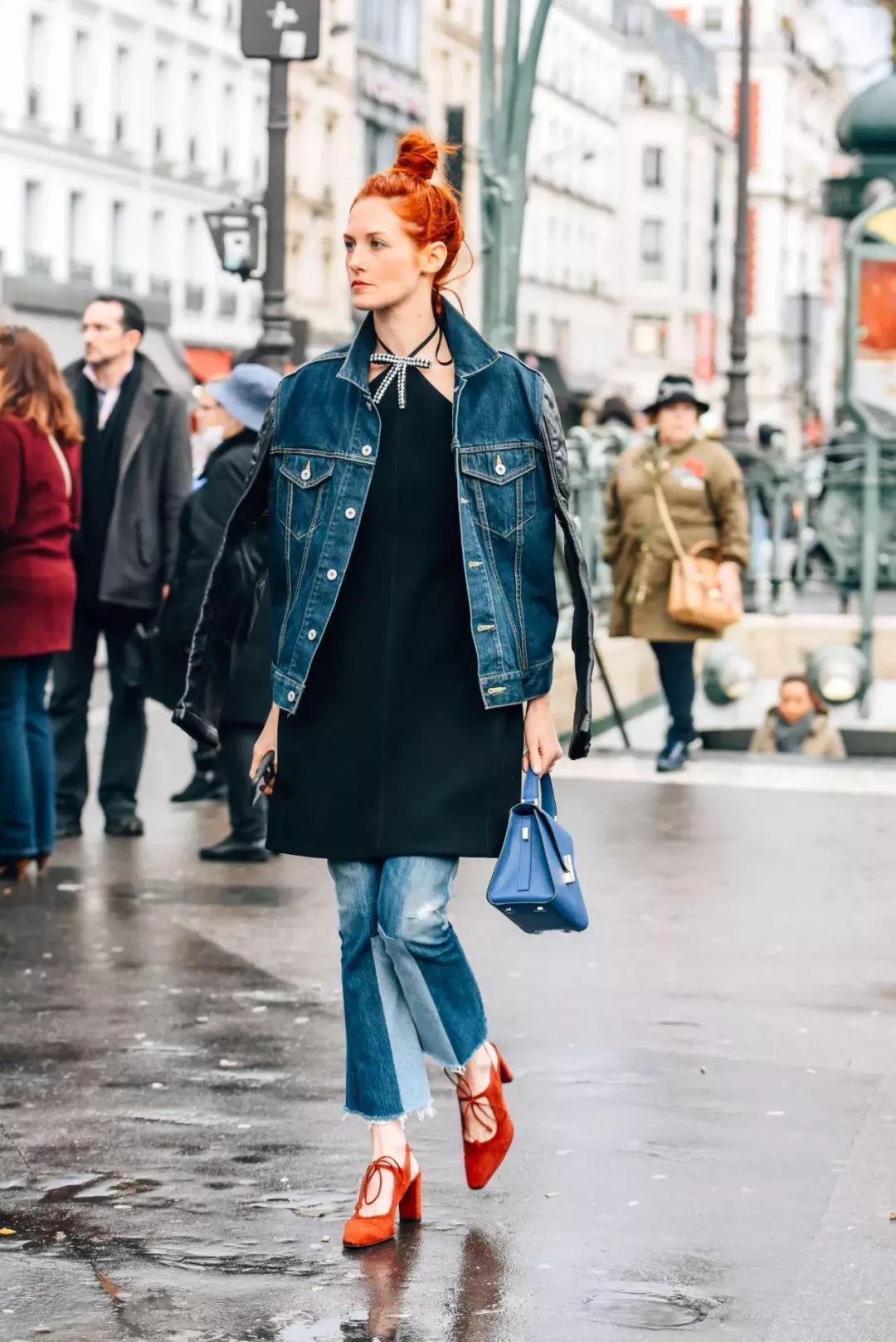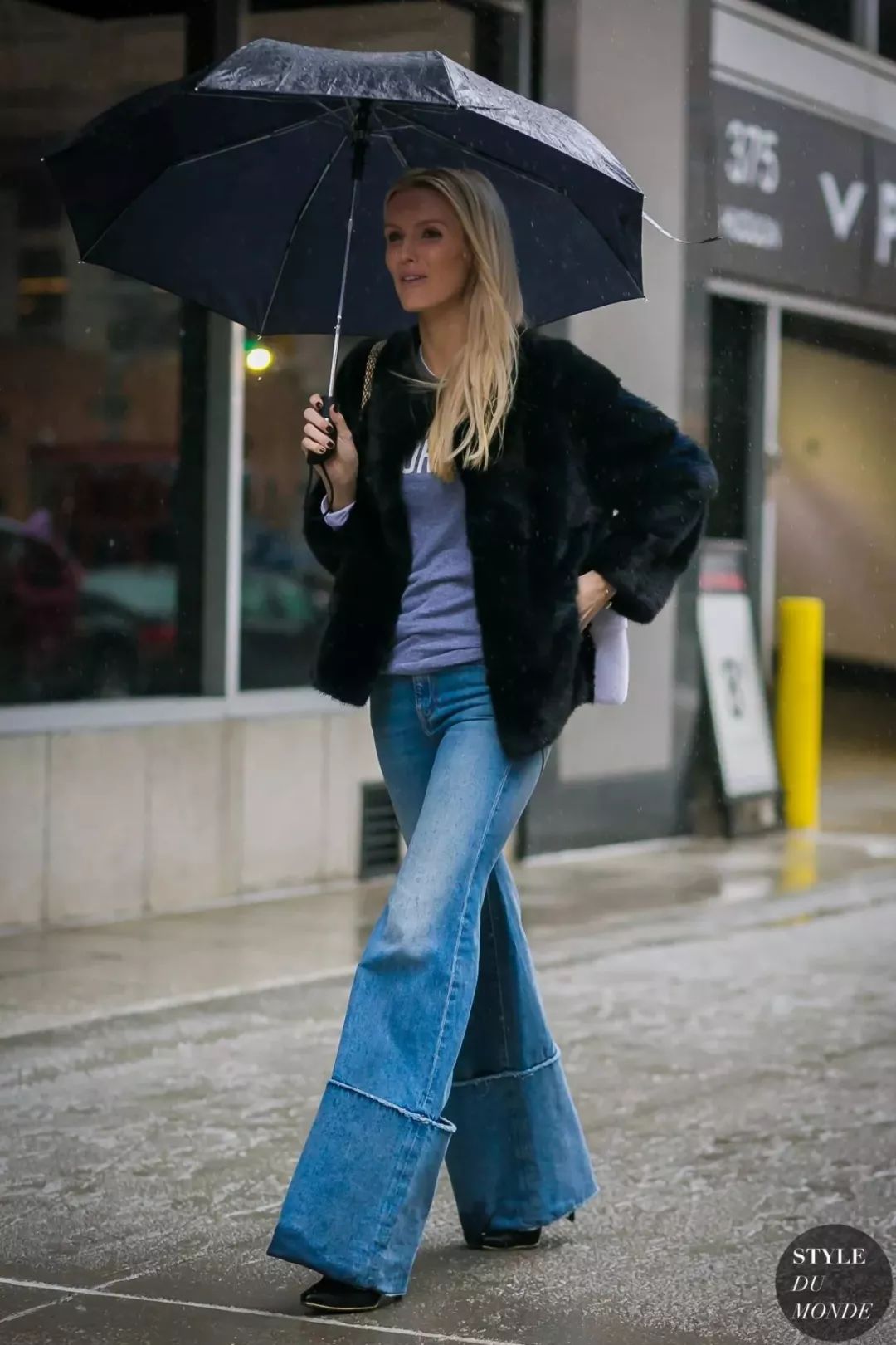 拼色牛仔裤的好穿之处在于它能特别恰到好处的中和掉你身上所有“over”的感觉,就比如和皮草搭配也不会觉得夸张,相反皮草都多了几分休闲。