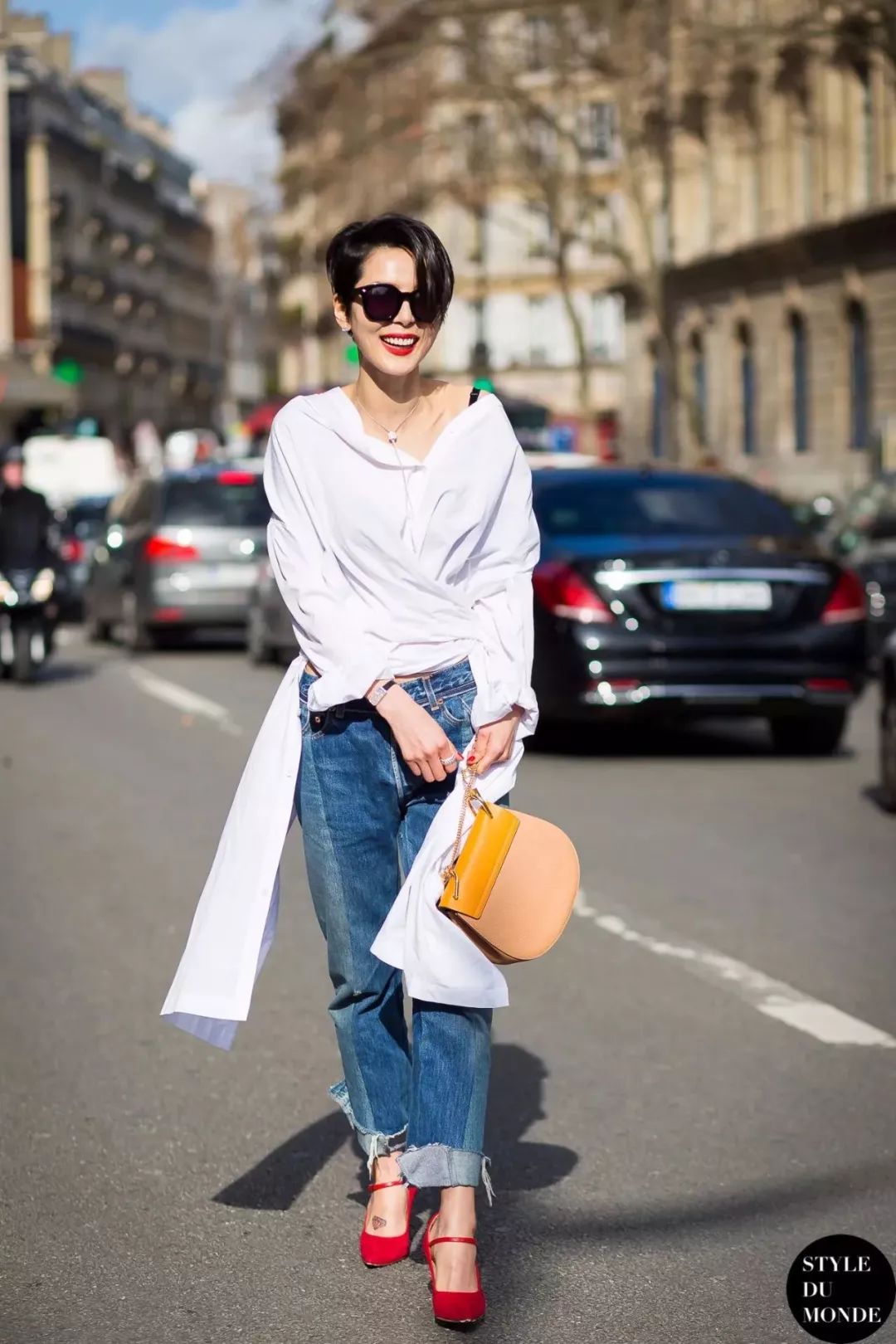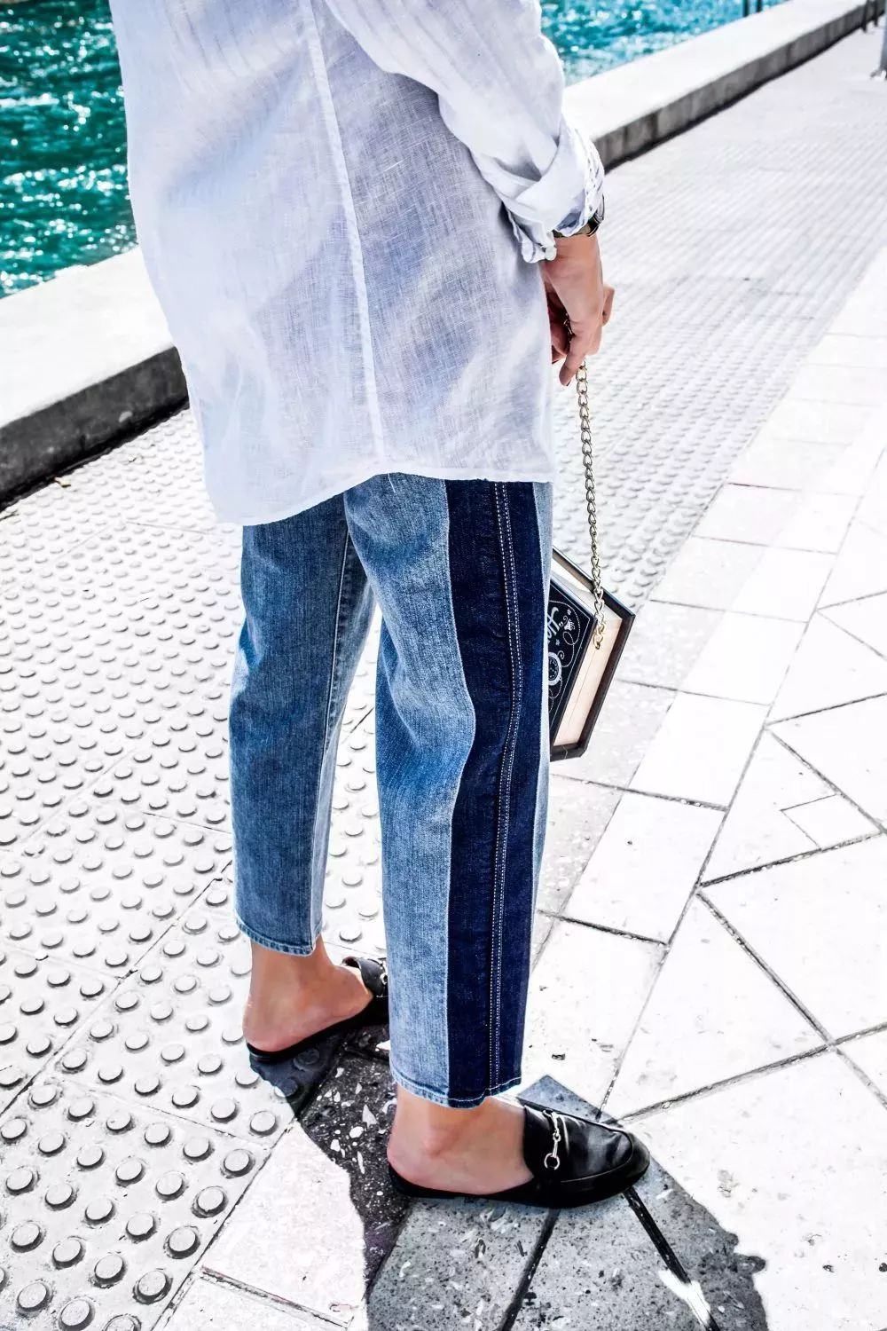 怎样才能吧Two Tone Jeans穿得时髦有范儿呢?首先可以尝试的穿法,是搭配衬衫。这对CP非常清新,会给人耳目一新的感觉。
