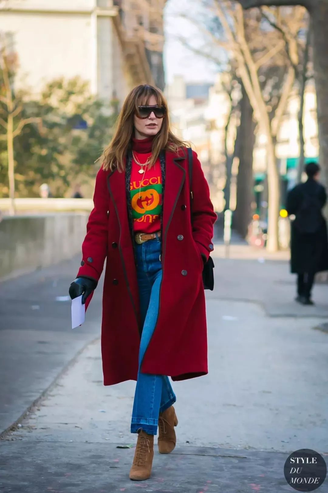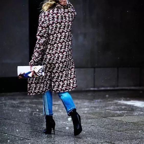 搭配大衣是现在这个季节最实用的穿法,拼色牛仔裤的帅气加大衣的飘逸,让你的时髦指数噌噌上涨。