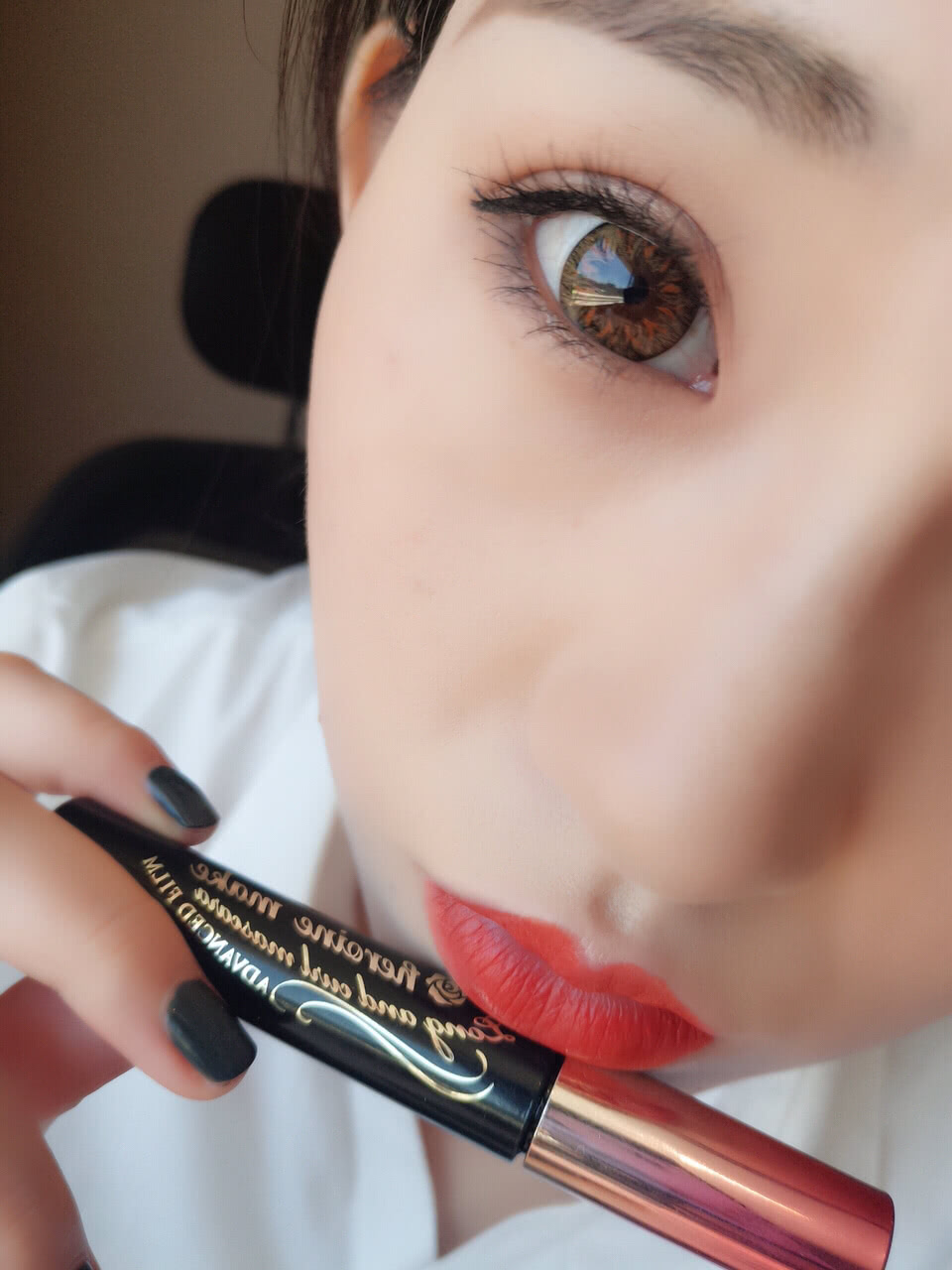 这款睫毛膏是资生堂的恋爱魔镜睫毛膏,膏体里也富含睫毛拉长纤维,刷完会有自然拉长睫毛的效果,刷起来很自然,不用刻意避讳也刷不出苍蝇腿来,很自然。持妆效果也是非常不错的,貌似日系的睫毛膏持妆时间都是比较长的,这一点非常赞。