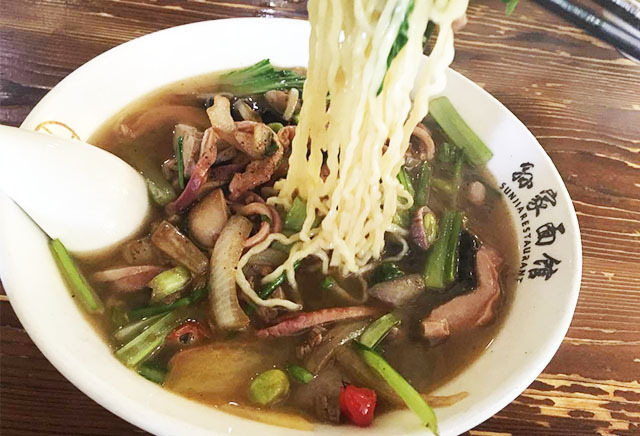 楚州的老面馆,面条的汤底是炒制而成的,现炒现做,手工擀面,略粗,吃起来让舌头很有存在感。