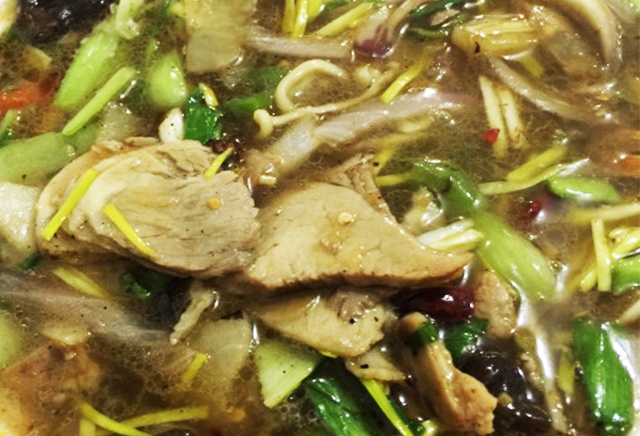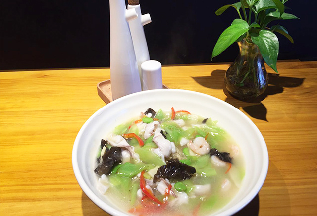 淮之味的特制酸菜鱼是它家特色面条之一,其中的鱼肉现杀烧制,沾上特色的酱油与独门秘料精炖,使整锅面料香气十足。