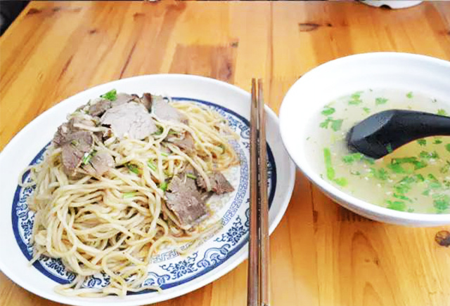 “清真回民”面条馆,特色是牛肉拌面老板,拌面很入味儿,少油不腻。表面放了很多的牛肉片,一定要拌着面一起吃