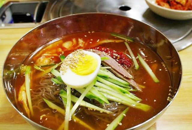 牛肉、泡菜、黄瓜、半个鸡蛋,撒上白芝麻,荞麦冷面和汤底全都好评。冷面不是冰的,温温的,非常爽滑。