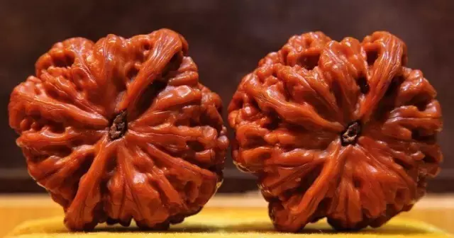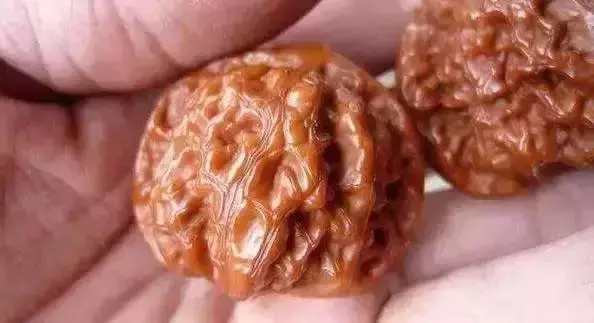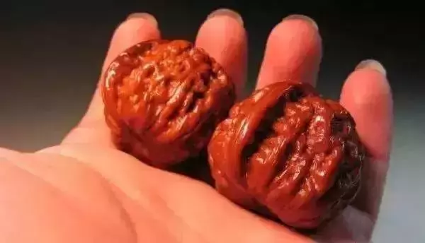 这时造假者技术高超,用小米粒填充进去,盘玩起来就有沙沙的声音了。所以挑选这类老核桃的时候就要听听核桃晃仁的声音了。老核桃经过几十年的把玩,果仁已经变成砂仁。而大多假核桃是没有砂仁的。