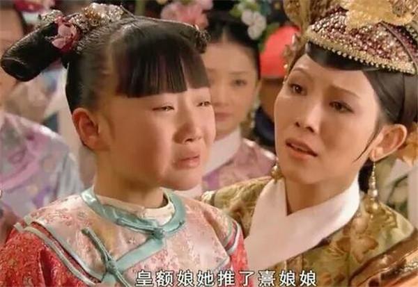 但是重新看了几遍后,发现这孩子明显是故意撒谎,她看到了甄嬛陷害皇后。一般孩子在遇到可怕的事情后,第一反应应该是见到敬妃和皇帝后就大哭。而她不是,她是一直安静,在甄嬛和皇后僵持不下以后,她有个镜头是在思考,然后突然就放声大哭了。这明显是思考后的结果。