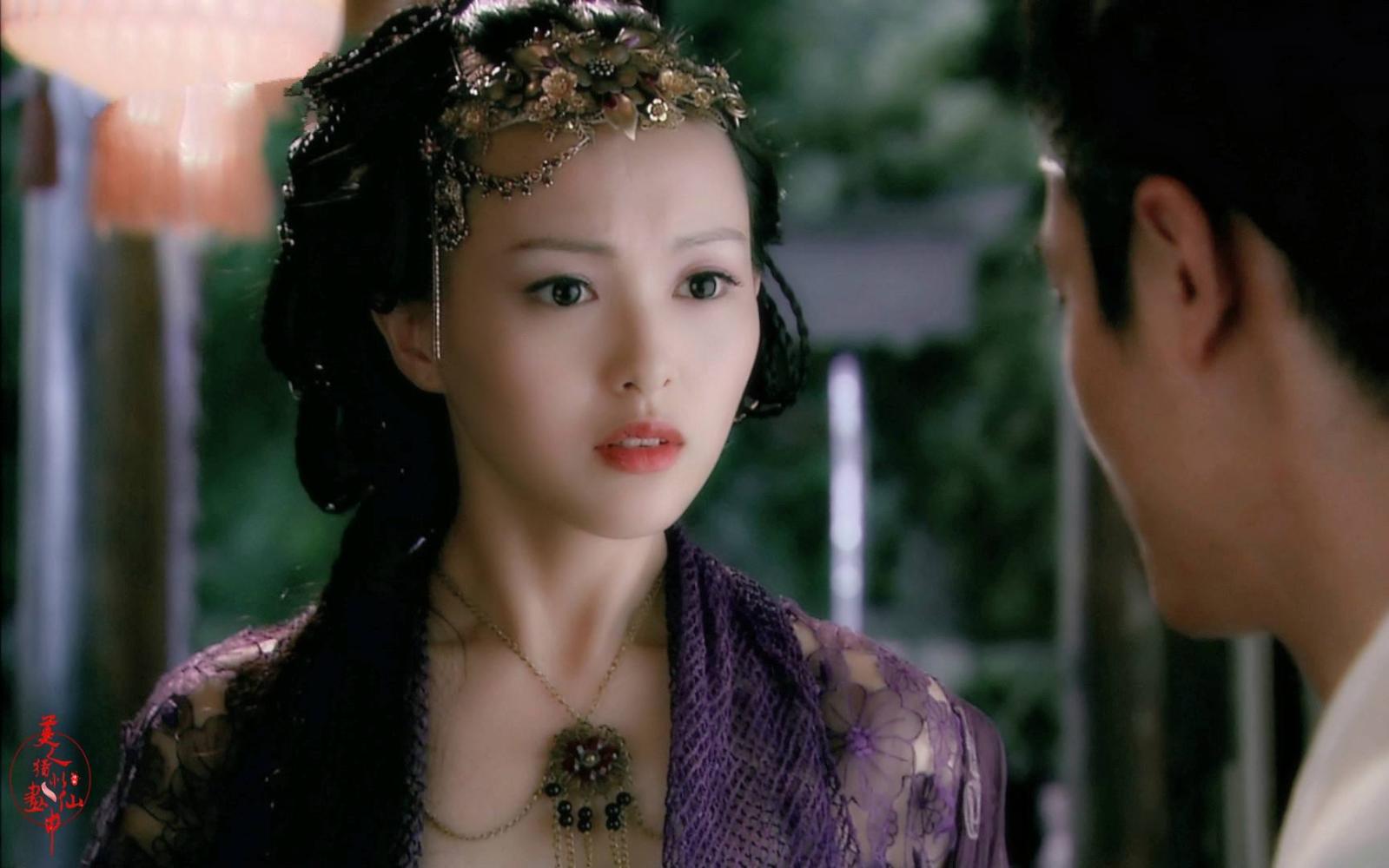 剧中唐嫣唇红肤白,长发披肩,一双眸子明亮有神,挺拔修长的身子立在木屋,好似一朵幽兰。从妆容到发型,到服饰都像极了20年前朱茵版的紫霞仙子。很美,真的很美,可她不是我心中的紫霞仙子。