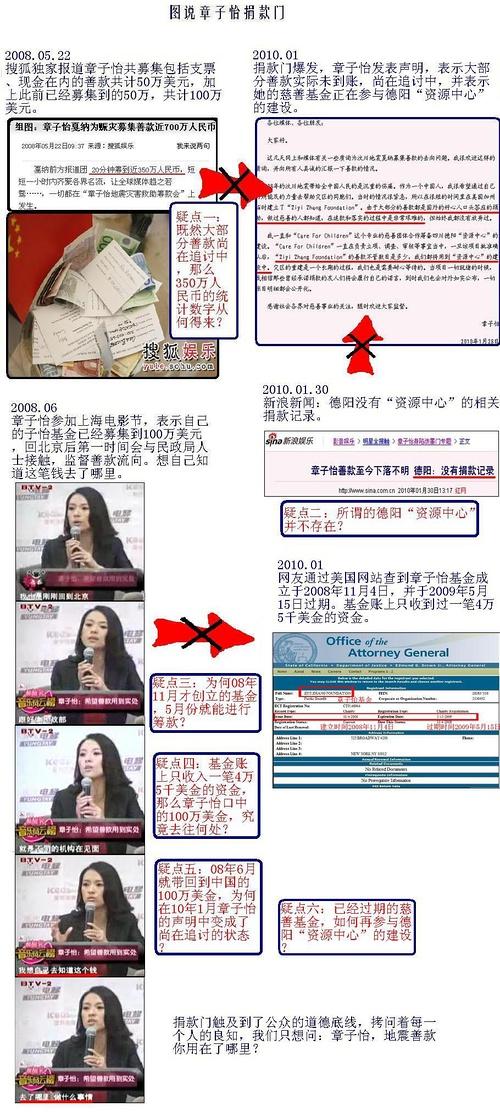 这一件事我想她可能永远也解释不清楚,此外,还有余秋雨诈捐门、成龙诈捐门、张杰诈捐门风波等事件。