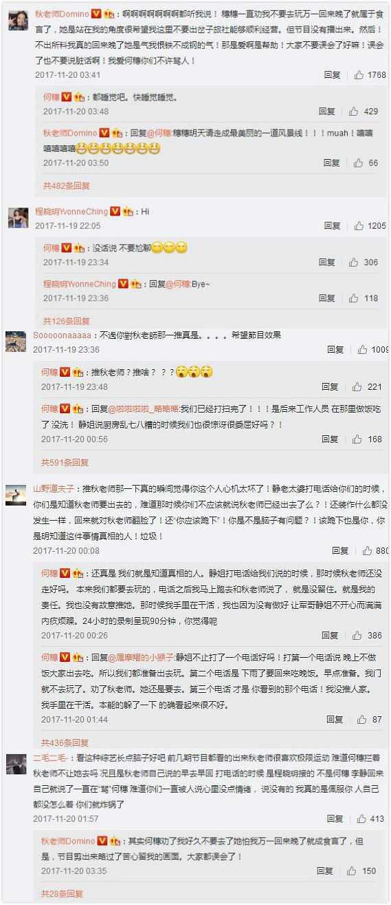 后来,秋老师在自己的微博里解释:“穗穗一直劝我不要去万一回来晚了就做错事了,但节目没有播出来。她是一直很照顾我帮助我的超级知心大姐姐,我不懂事老惹事,所以她气我不听话你看吧又犯错了这个心情而已”。