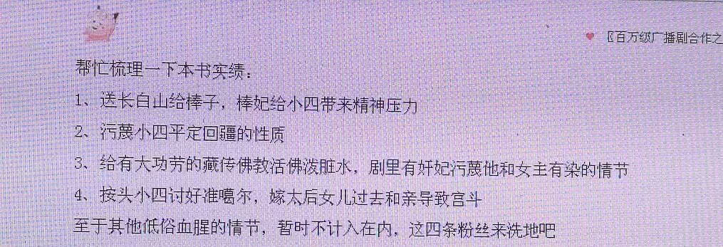 对此,有网友表示如果属实,被禁了活该:”现在宫斗十有八九把男主写成弱智。比如甄嬛传,一个个都给皇帝戴绿帽子,后宫里斗的每天乌烟瘴气,不是这个孩子掉了,就是那个孩子掉了。古人讲修身齐家治国平天下,皇帝连后院都管不好,乱成这样,大丈夫?关键是你yy别的庸君就算了,明朝后期,什么木匠乐工都有。小四这么努力?被这么写“。