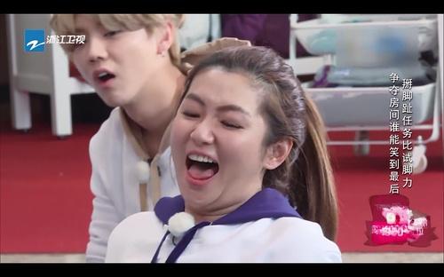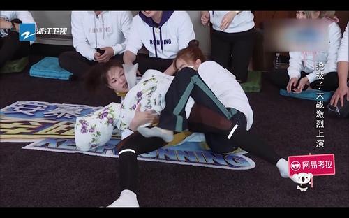 最明显的就是和baby抢被子游戏那里,两人都是华谊力捧的小花。baby还试图做表情管理,但另一位已经完全放弃了