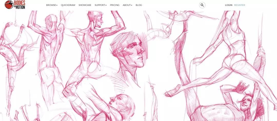 bodies in motion是目前人体动态比较全的参考图片网站,舞蹈姿势、线稿、真人、3D都有,很多小伙伴都有用过吧?比较重要的是还有一个动作各个帧数的截图,给画动画的同学参考价值性极高!比较重要是不用爬!
