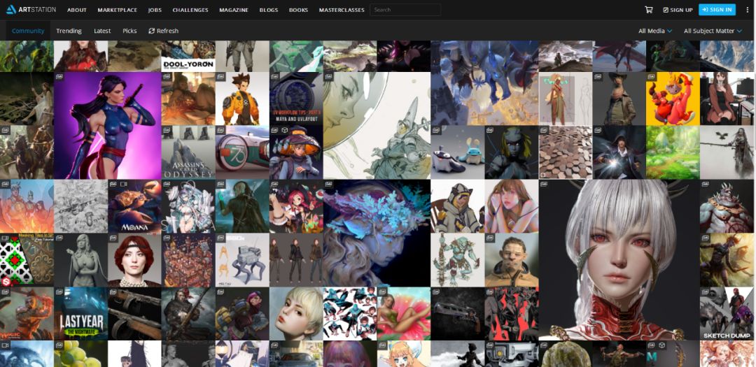 artstation相对来说更加偏向CG类,网址:https://www.artstation.com/,全世界艺术家的作品,质量非常高,一些游戏设计图与电影概念图都有,大体风格偏向欧美风,国内很多搬运作品都是在这里,当然我也是啦!
