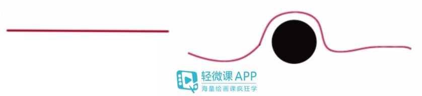 动漫卫衣怎么画?首先微课菌这里先画出一条平平无奇的直线,当我在这一条直线放上一颗球时,那么这一条直线是不是就变弯了呢?这就是球的一个内部体积对外轮廓的一个影响。