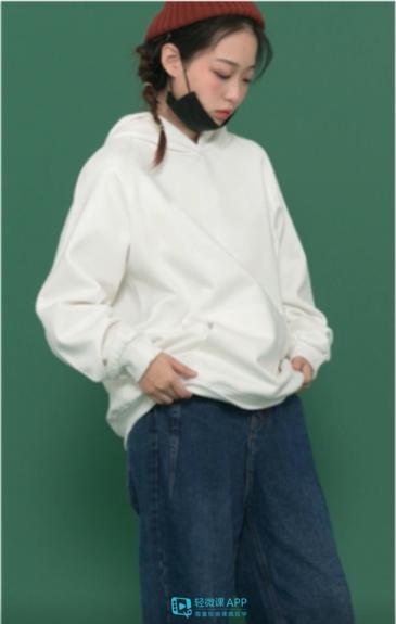 肩膀以及胸部这一块,正因为体积的存在,所以才会出现这样的一个起伏变化。其次,卫衣给我们的感觉大多数都是比较宽松的,那么在布料给人一种比较偏厚、偏硬的感觉。