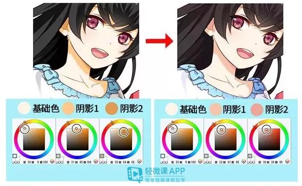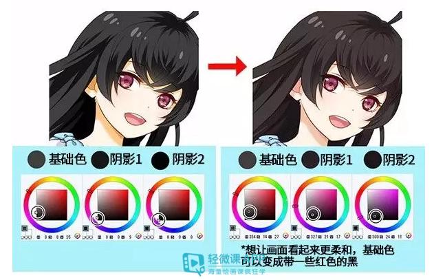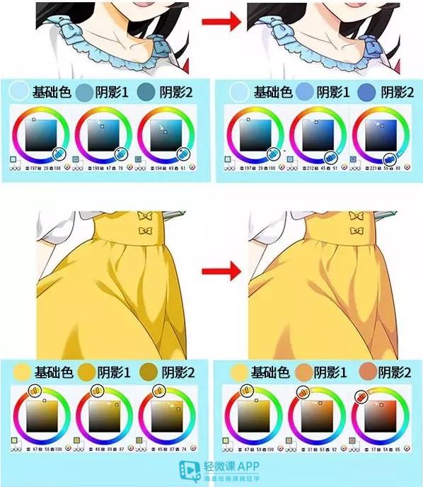选择基础色时,阴影1和阴影2可以根据下方举例错开色相。