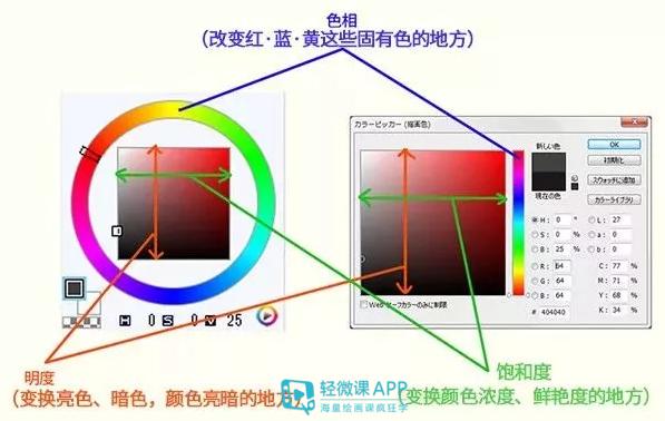 色相·饱和度·明度成为【色彩的三属性】。是色彩理论的基础。在色轮上可以对这三个属性进行自由变换。