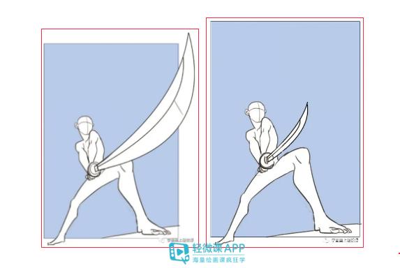 但是,哪怕是把剑画在人的前面,也是有技巧的。下面我们来看一组对比,你觉得A和B哪个更帅呢?
