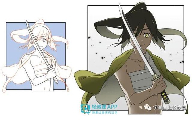 想要把持剑的姿势画得帅,一般我们都会把剑画在人的前面,以突出其存在感。