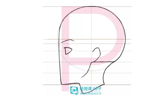 1、我们可以直接取用前面画正脸时用的草稿,从正面绘制出参考线(正面和侧面五官位置相同)