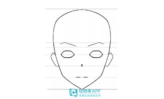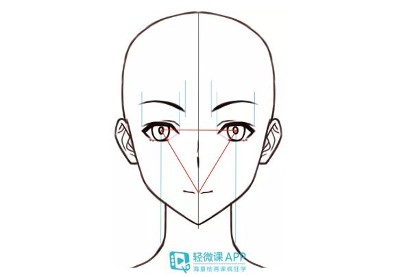这里需要注意两个点:一个是眉毛要比眼睛更长,二是,应在眼睛中心内画出颈宽。