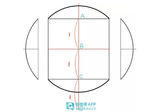 3、画出轮廓,取下C和D之间的下颚长度,长一点比较真实。