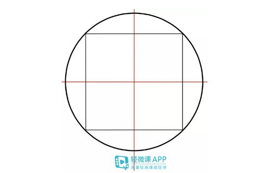 了解完对称性后我们可以尝试画一组方块头部练习,十字线可以帮我们保持五官的平衡,确保我们的位置关系不会发生混乱