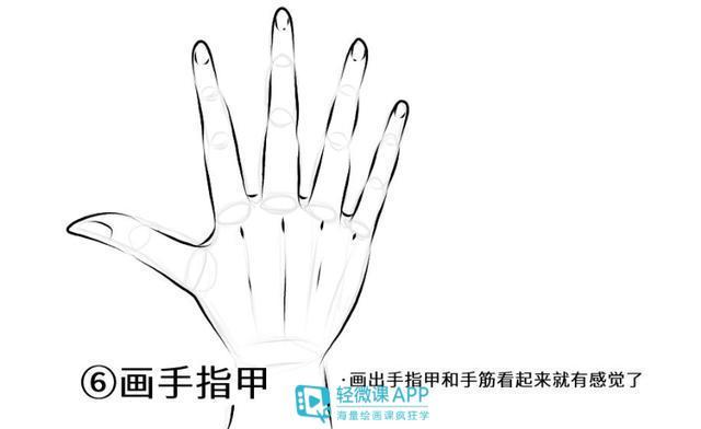 画手指甲——按照手指的形状画出整齐的手指甲和手部的手筋,看起来会更有感觉。