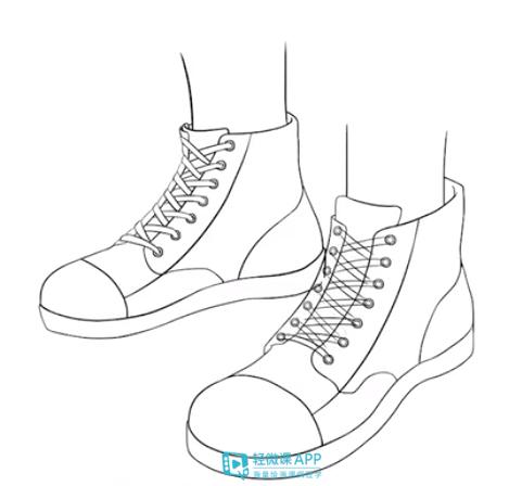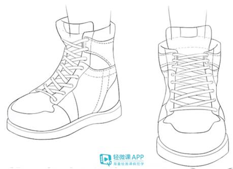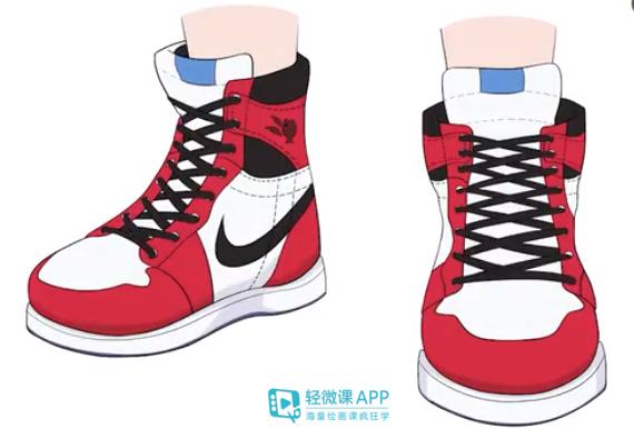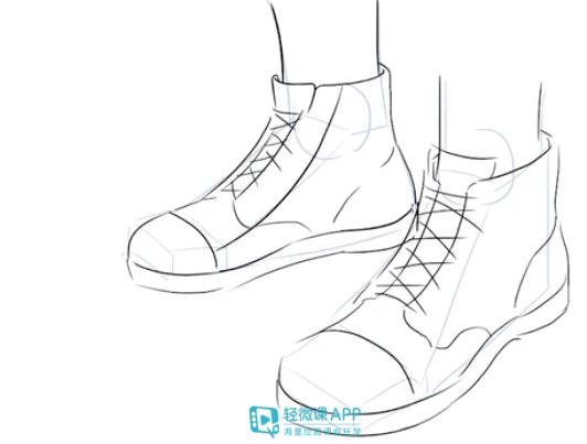 运动鞋需要画出那种厚实的鞋底与鞋背的厚度,在鞋带的刻画上同样也不能马虎,要仔细画出鞋带的穿插关系。