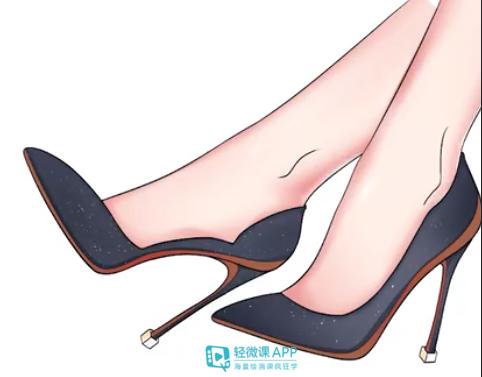 画高跟鞋最为明显的特点就是,鞋跟比前脚掌高,正义感脚是处在一个踮着脚的状态。