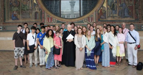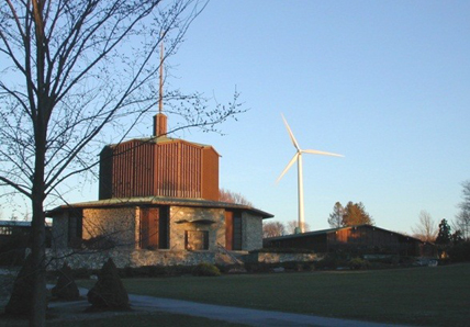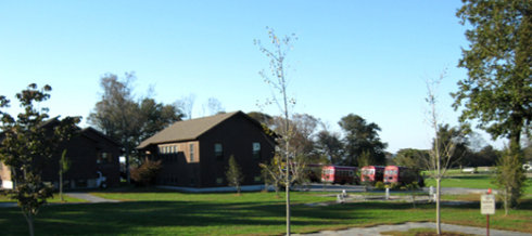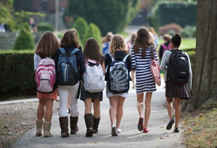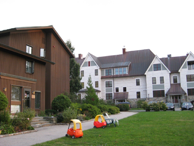 远处有红色的校车,每到周日的下午都会有一位老师开校车带我们去镇上,每隔几周还会去一次购物中心