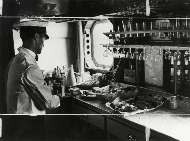 1936年11月19日,帝国航空Scylla号上,乘务人员正在准备午餐,帝国公司航班的服务标准,在当时位于世界前列。