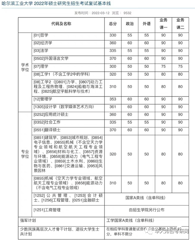 8、哈尔滨工业大学2022年硕士研究生复试分数线