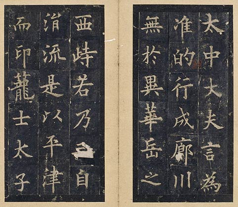 《虞恭公温彦博碑》,岑文本撰,欧阳询书,唐刻,北京故宫博物院藏宋拓本,黑墨精拓,剪裱装册,共23页,每页纵18.3cm,横9.2cm。