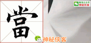斜钩横切入笔,出钩饱满,撇较短,呈竖势,末点可作右点,也可作撇点。