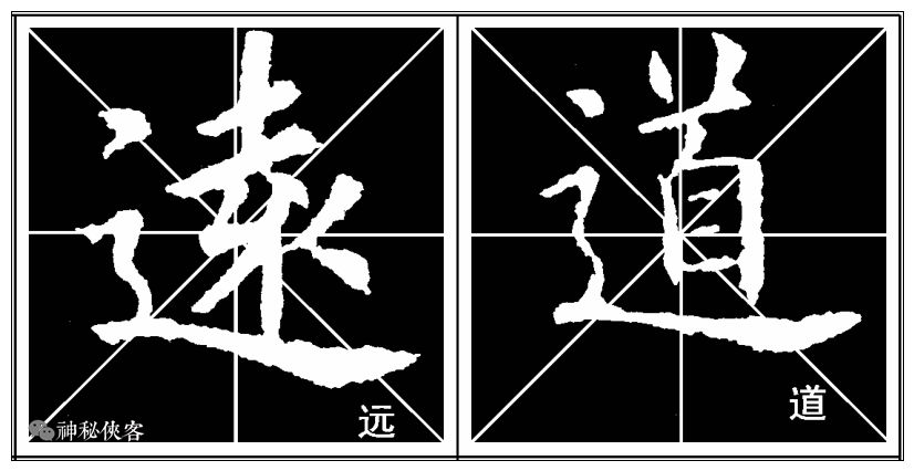 走之折整个体势右斜,平捺宜长,与走之折夹角应为一钝角,其夹角宁大勿小。
