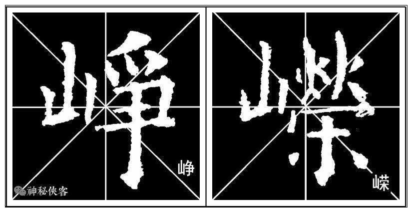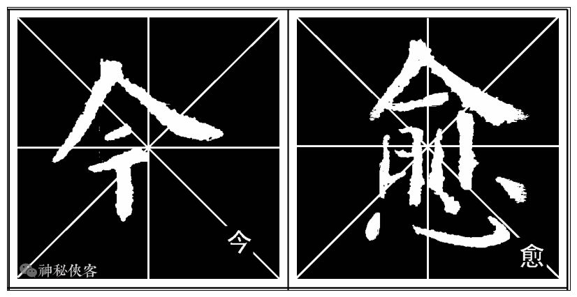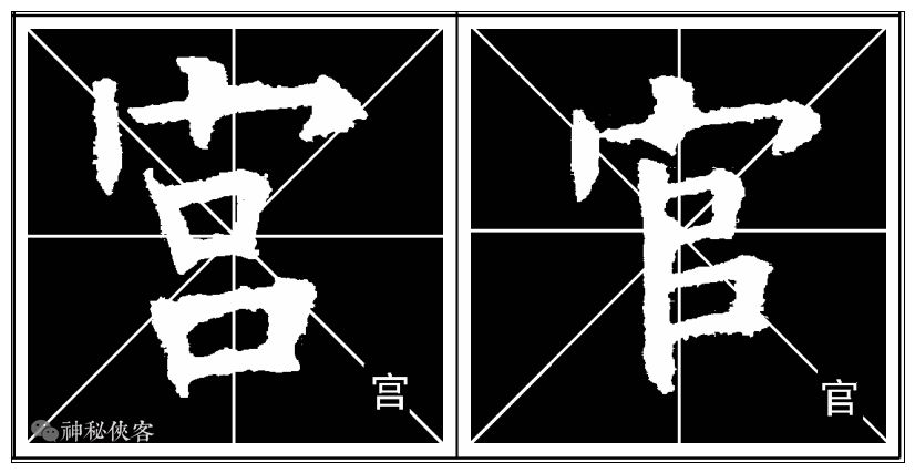 上包围结构的字关键在于写好字框。字框是字的外轮廓,它决定字的大小。因视觉上的原因,一般来说字框要写紧缩一点,看上去才会觉得跟其他的字大小一致。否则,如果实际上跟其他的字大小相同的话,在视觉上就会显得大出了许多。——神秘侠客