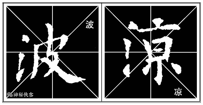 第一撇多粗起细收,第二撇呈兰叶状,起笔不可太靠右,应在横画中间偏左的位置,捺画起笔靠近横画起笔。