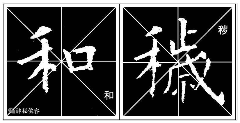 两折各取右上右下分离势,且上折比下折略宽,竖画坚挺有力。