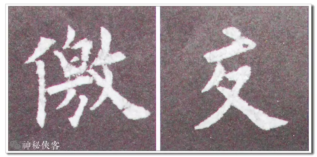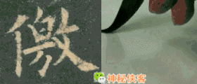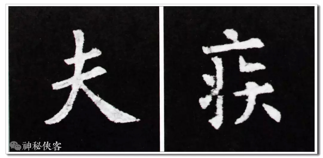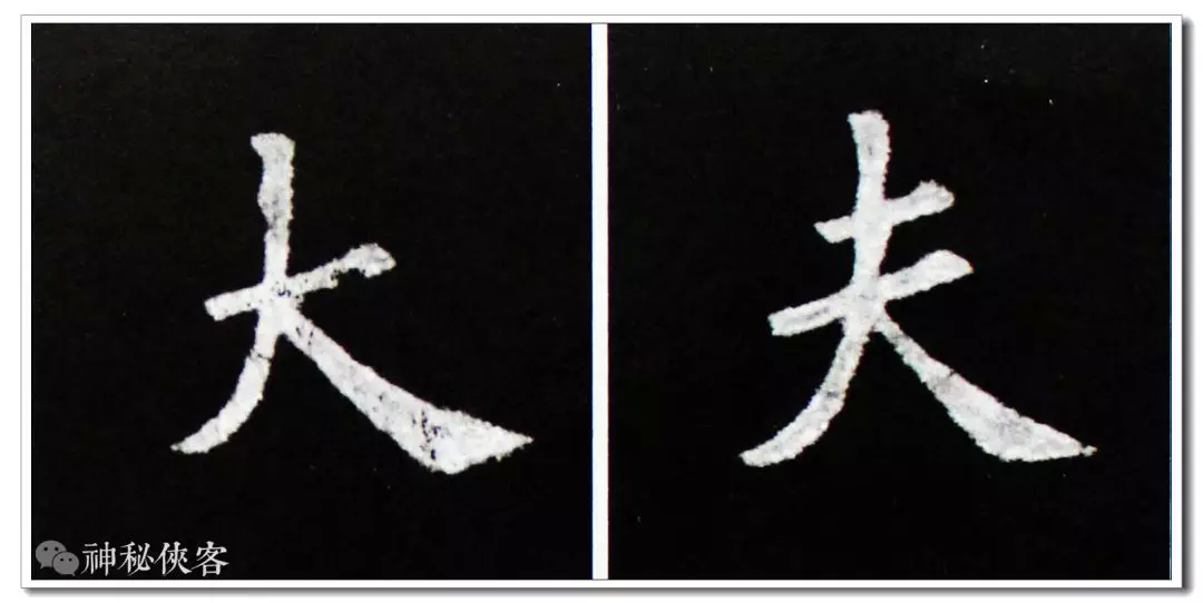 “大”和“夫”两字的撇都穿过横划,经过观察与研究,凡是穿过横划的撇,其在横划之上部分皆以竖的写法相同,穿过横划之后渐行渐起弧度撇去。