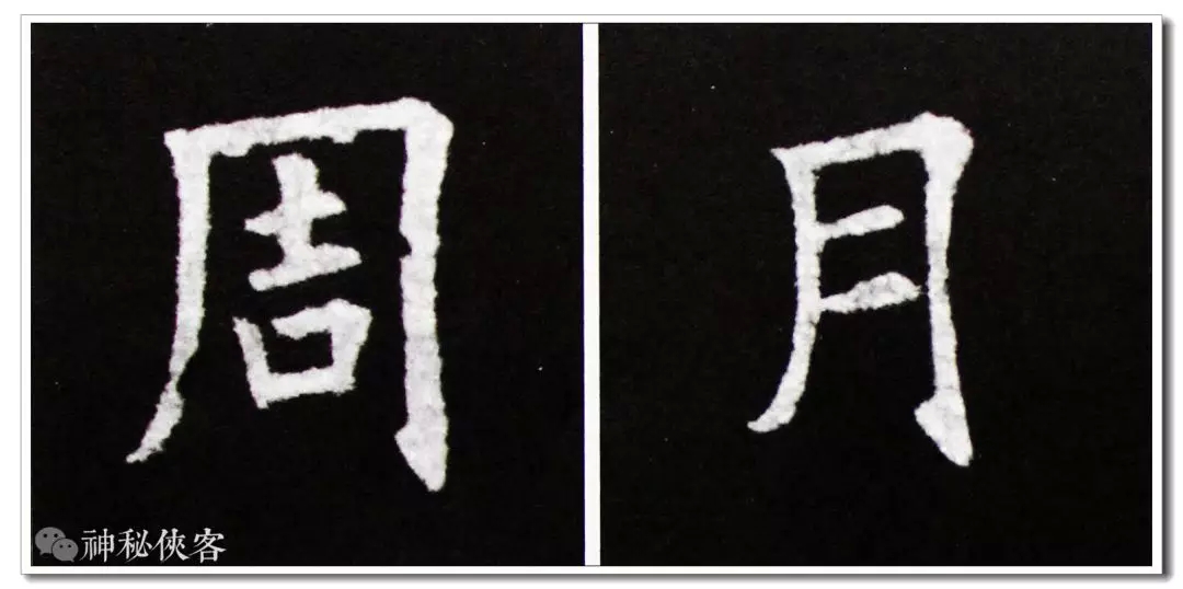 竖撇的特点顾名思义就是竖与撇的结合。“周”和“月”两字都是半包围结构字的竖撇,自上而下,约占整个竖撇长度的五分之三均以竖的写法写成,以下部分开始渐起弧度向左撇去。