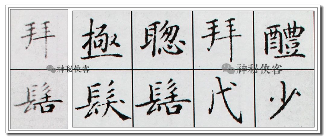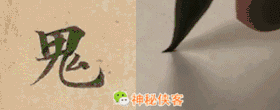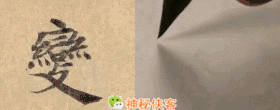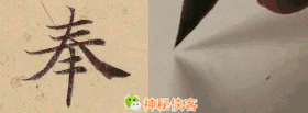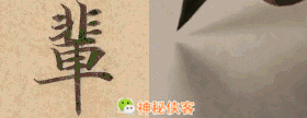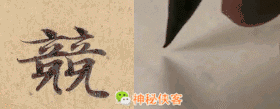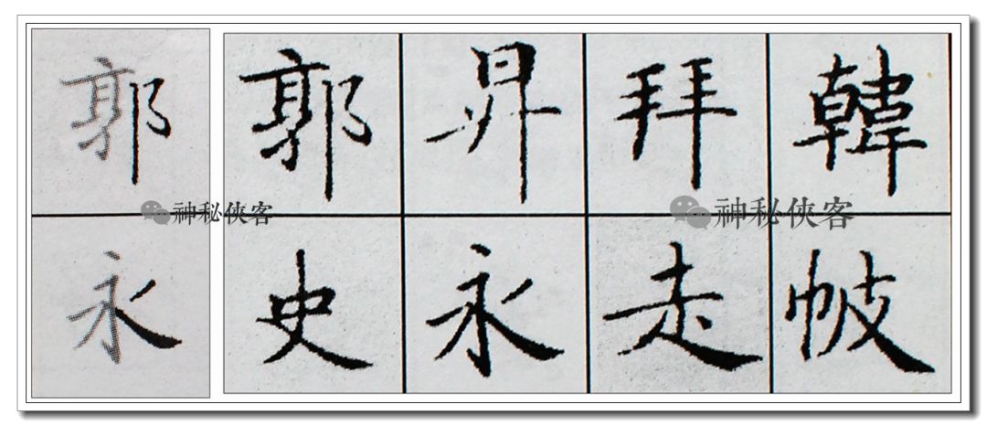 有些字,左边宜缩,右边宜垂,缩在上,垂在下。若写成左垂右缩就不好看了。如:“郭”“升”“拜”“韩”等字。有些字,左边宜缩(内收),右边宜曳(外放) ,若写成左曳右缩也不好看。如“史”“水”“走”“帔”等字。